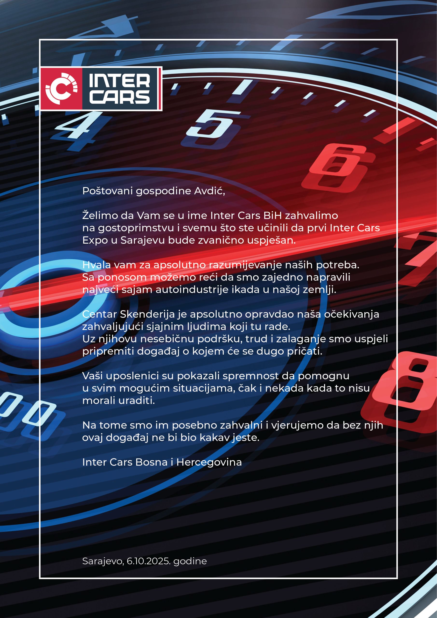 Hvala timu Inter Cars BiH na odličnoj organizaciji i prepoznavanju našeg truda i saradnje, ovakvi rezultati i zahvalnost motivišu cijeli kolektiv Centra Skenderija da nastavi davati maksimum u svakom projektu.